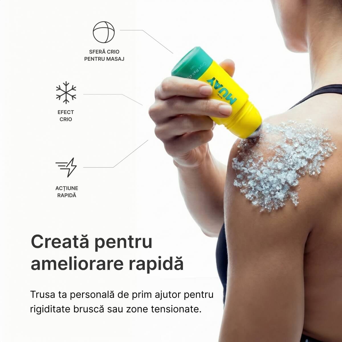 Masează zonele rigide de maxim 2 ori pe zi folosind bila metalică pe zona afectată.